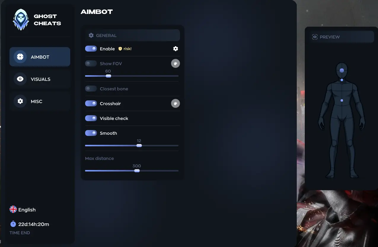 - Smooth — smoothness of aimbot movement (higher = smoother / less snap)